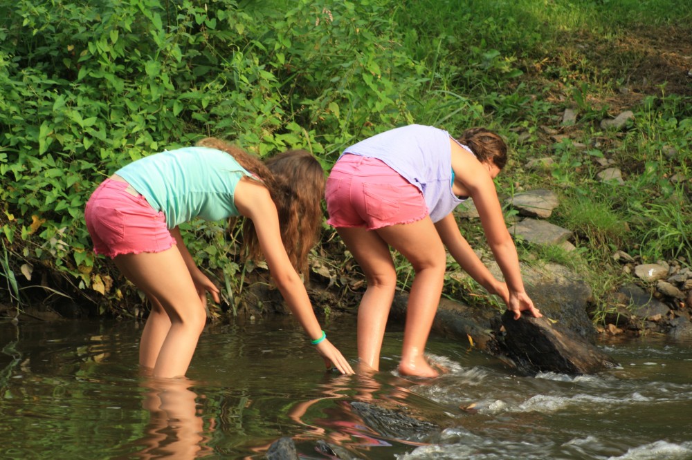 Merlijne en Nina in een riviertje.