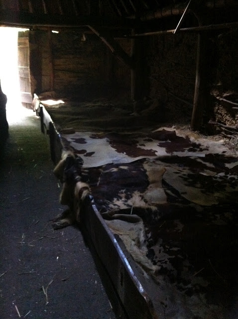 Hier ga ik slapen…op strobalen met koeienhuiden
